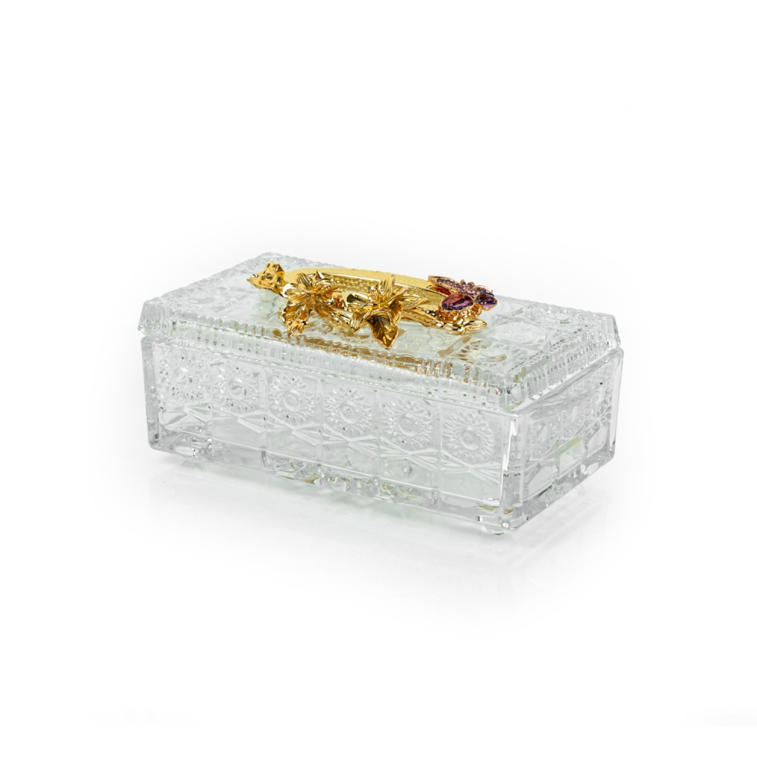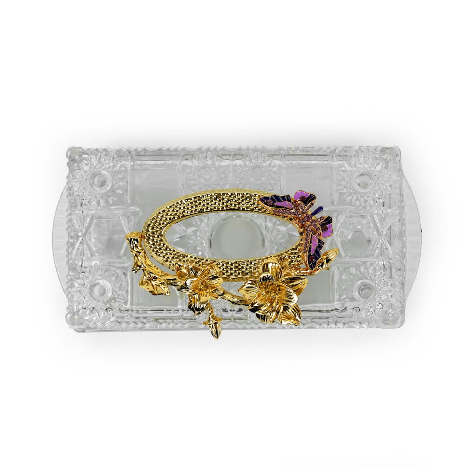 The luxurious Glass & Alloy Tissue Box, Large ,adorned with gilded floral beauty wrapped around, is a symbol of opulence and practical elegance. Crafted with meticulous detailing, it features a glass exterior that adds a touch of sophistication to your living space. The gilded floral design provides a sense of regal charm and opulence. Whether placed in your bathroom, bedroom, or on your desk, it becomes a symbol of both functionality and refined aesthetics. With this tissue box, you're not just organizing; you're showcasing your appreciation for the finer things in life.