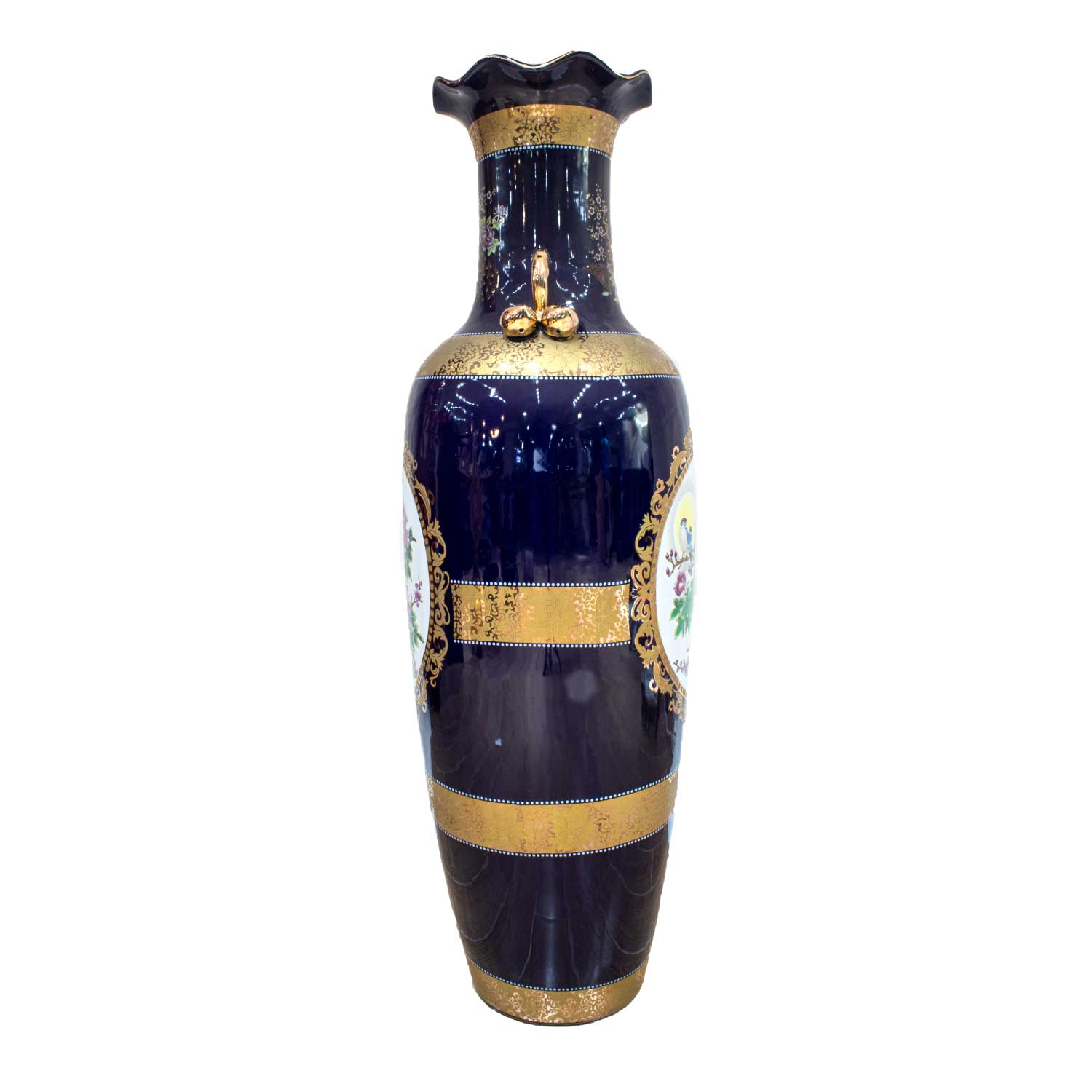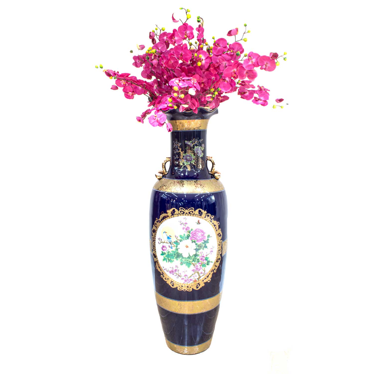 Hand Painted Under Glaze Ceramic Floor Vase 52" with Gold Color Handle Flower & Bird Design - CP JC52" V