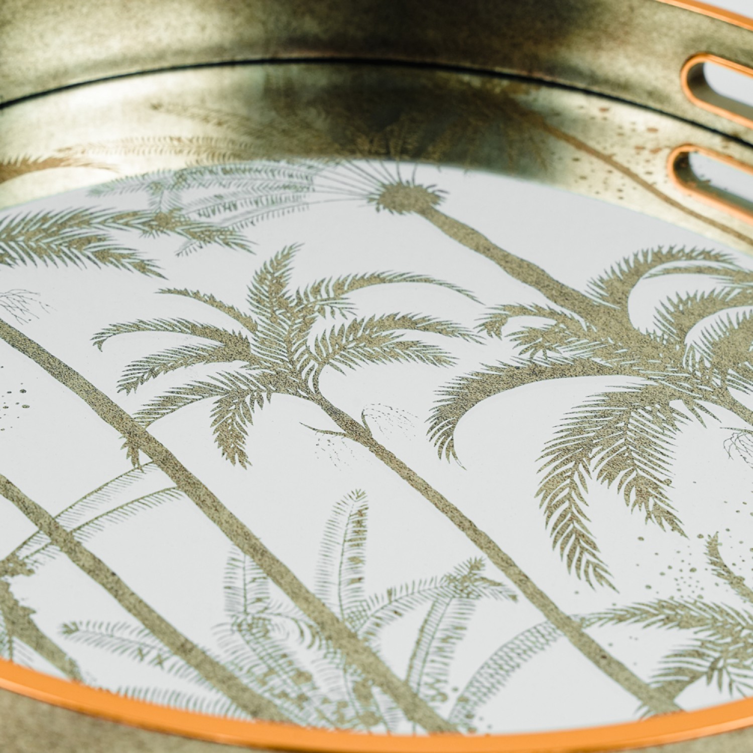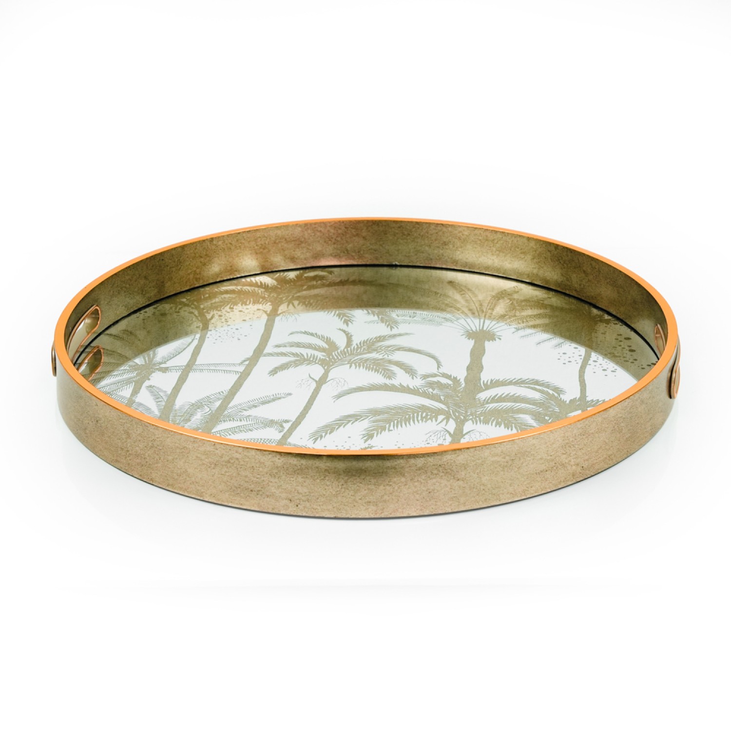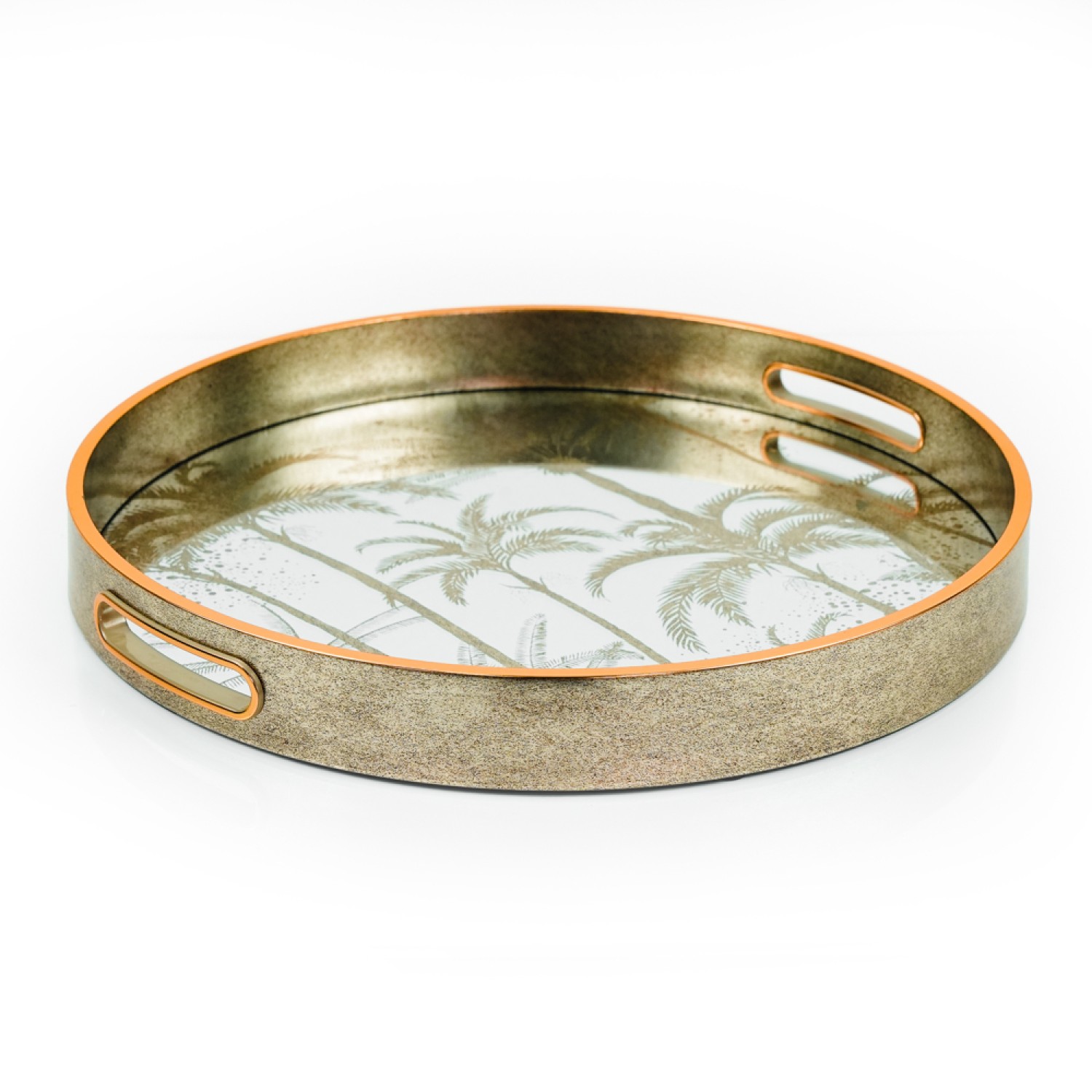 Round Plastic Tray w/ Pattern Glass made of durable plastic and covered with a Pattern glass protector on the bottom of the tray, you can place food and full glasses on it without worrying about soiling the tray. Smooth surfaces can be easily wiped off with a damp cloth to regain their shine.The decorative coffee tray has high sides and 2 cutout handles, which not only prevent items from falling but also make it easy and comfortable to move or carry.